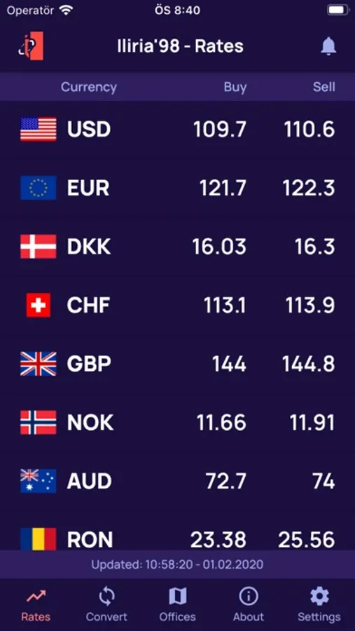 Iliria'98 Money Exchange used by thousands of people in Albania, it combines an easy to use, modern design with an accurate, commercial data feed that is updated directly from Iliria'98's source. But if you are away from the internet, that's okay, it works offline too!