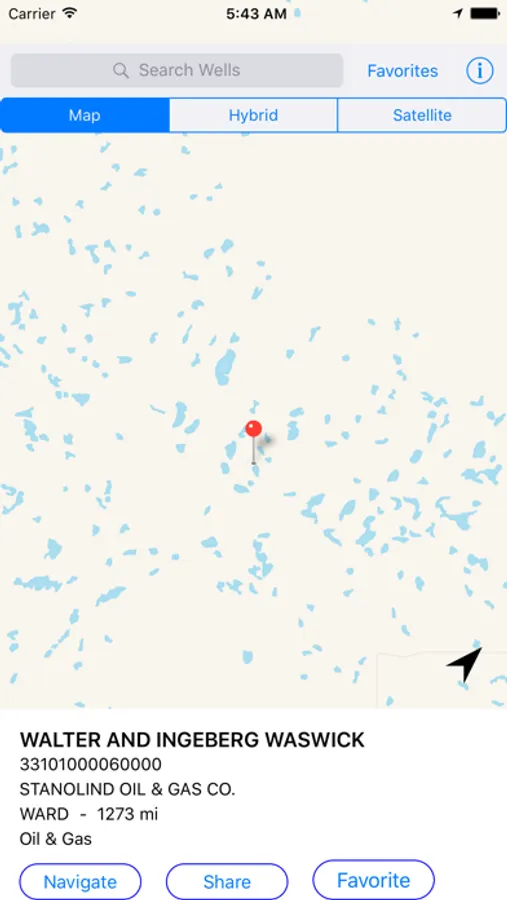 Oil wells can be shared or navigated to using Apple Maps or Google Maps.
