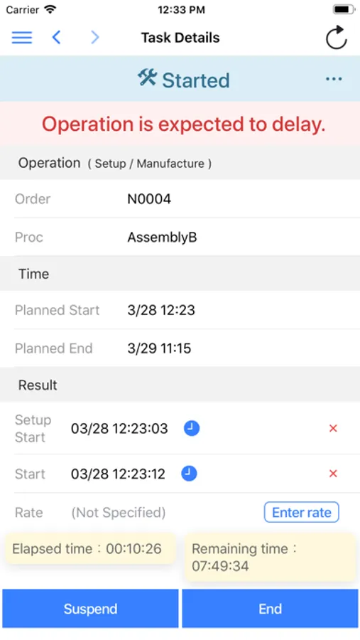 Manufacturing plans created in the production scheduler will maximize their value only if they are executed properly on the manufacturing site based on the plan. However, it is not always possible for operations in the manufacturing site to proceed according to plan.
