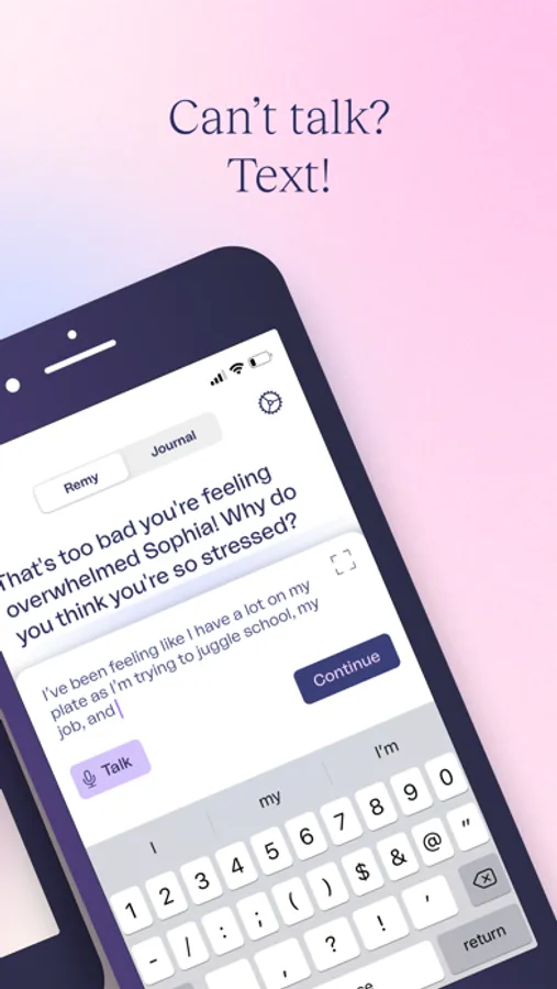 Talking with Remy is a revolutionary way to gain more control over your thoughts and emotions to grow in a positive direction. Inwords is a free personal journal, self-reflection, and therapeutic app that you talk to, powered by both human and artificial intelligence.