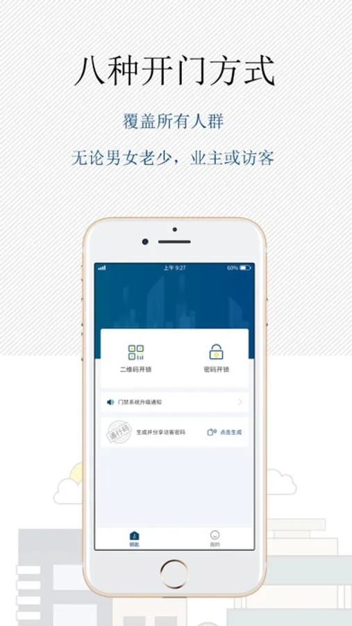 智慧社区人脸识别云可视多功能门禁系统的手机客户端。可以实现多种通行方式适合各种人群。