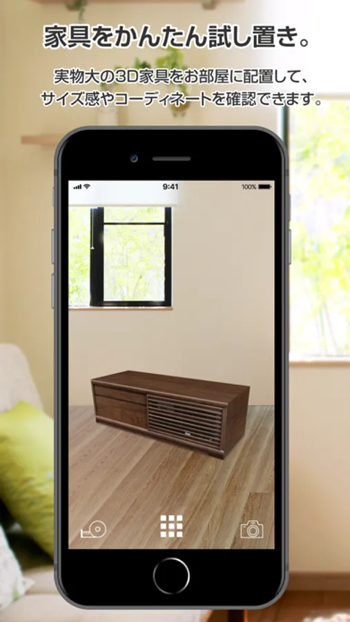 「こもれび家具」が製造する家具の3Dモデルを、お部屋へARカメラで試し置きするアプリです。