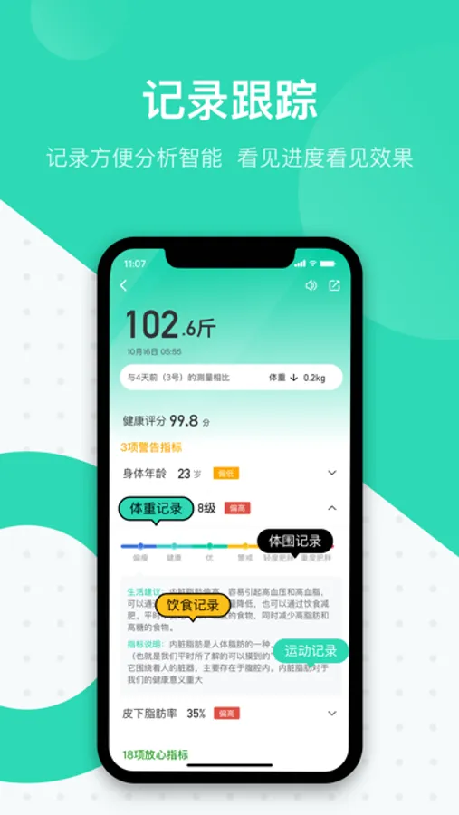 为了帮助用户管理更多的身体数据,支持对接脂玫乐体脂秤设备。