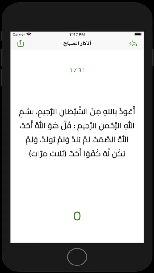 ١- مسبحة إلكترونية مع قائمة بعدد التسابيح مفصلة