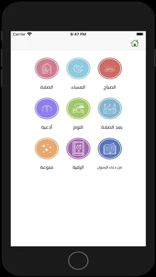 ٥- الأذكار وتشمل ( أذكار الصباح والمساء والصلاة وبعد الصلاة وأذكار النوم - من دعاء الرسول (ص) - أدعية من القرآن الكريم - الرقية بالقرآن - أدعية منوعة )