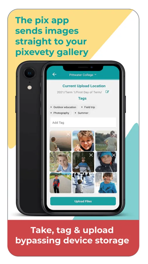 • Take photos or videos using your pixevety app and bypass local storage (perfect to protect you and your media subjects) - There’s no need to store images on your personal device when taken on behalf of you, your school or business