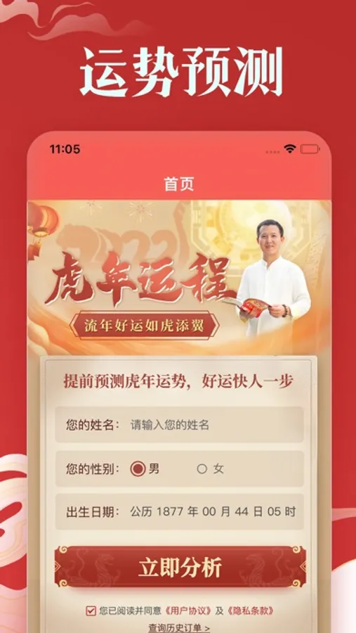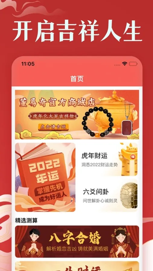 吉祥算命,为您带来2022虎年详细准确的运势报告!通过您的生辰八字与姓名,结合周易命理五行,为您解答一年运势走向,助您掌握人生路程!