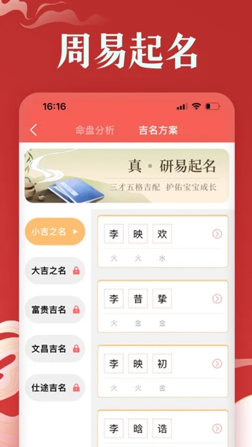 八字算命起名app,为您和宝宝的姓名做全面解析,为您提供更多起名改名参考建议,更有真人大师专家在线为您起名,力求为您与宝宝取得一个有助于后天发展的姓名!