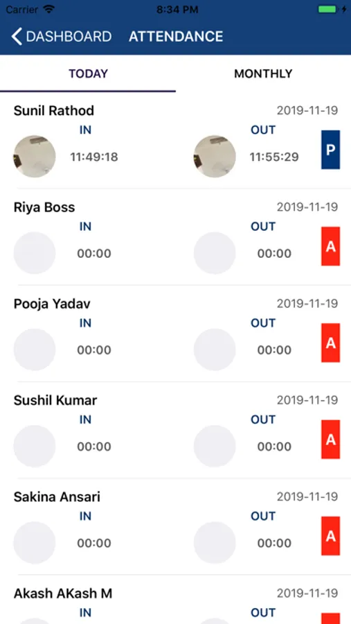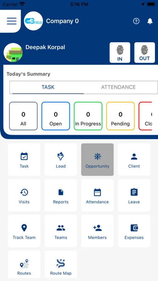 d)Check-out after attending to the task by providing visit notes and check-up status (completed, pending, cancelled)