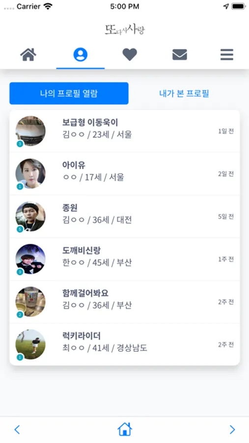 지역별, 나와의 거리순으로 나의 연인을 찾아보세요!