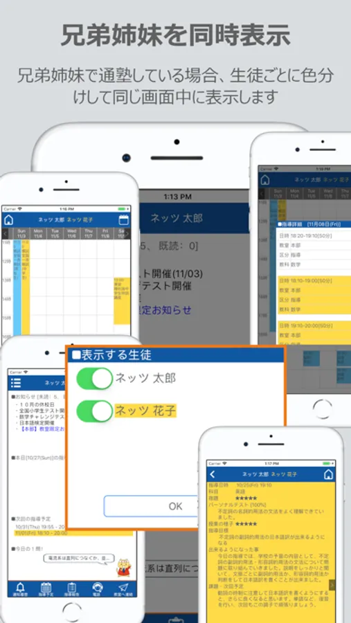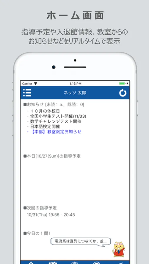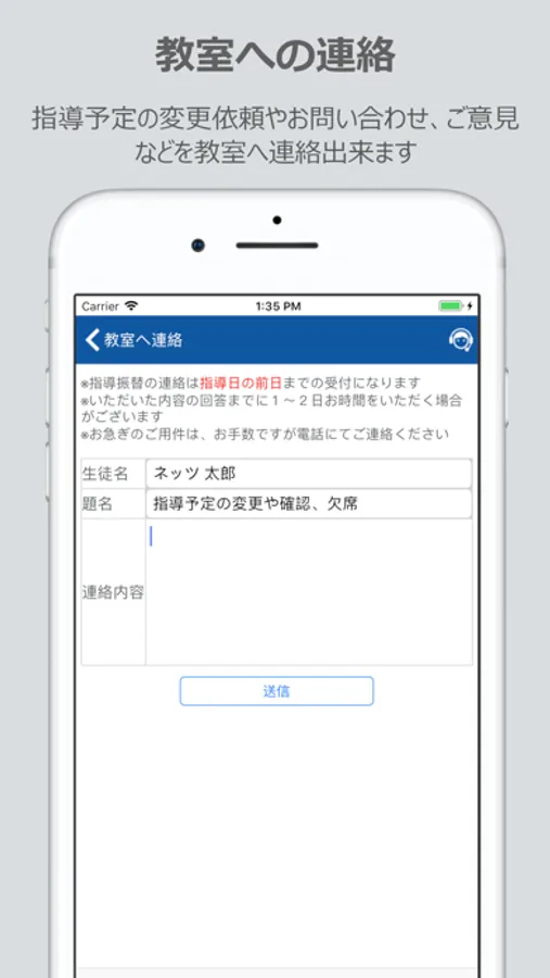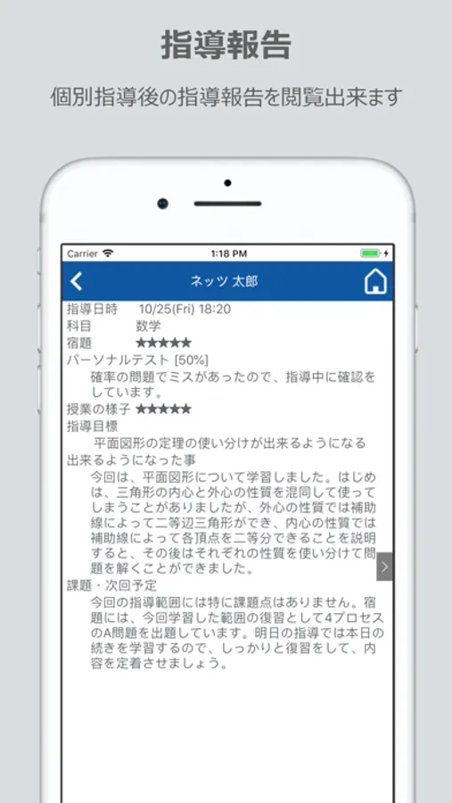 対話式進学塾1対1ネッツに通塾中の生徒の保護者を対象にしたアプリです。