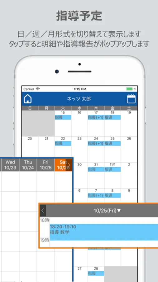 指導予定、指導報告、請求情報などを閲覧する事が出来ます。