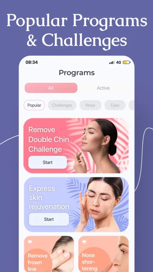 FaceFitness will show you effective practices of facial gymnastics. The app includes more than a hundred exercises. Training programs cover the face and its specific parts: forehead, eyes, nose, cheeks/cheekbones, lips, chin, and neck. The duration of the programs is from 7 days to 3 weeks.