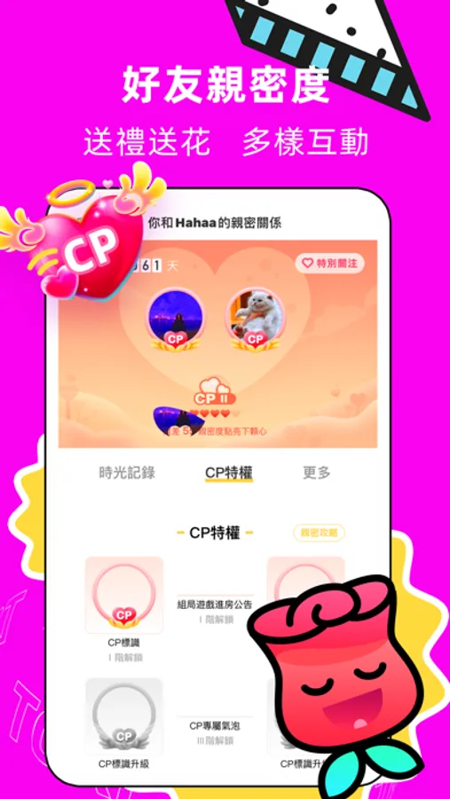 專屬頭像框,炫彩進房公告,親密關係可享有的特權很有誘惑力嘛。