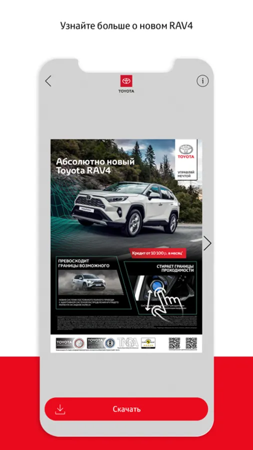 Оживите брошюру с помощью технологии дополненной реальности и испытайте незабываемые впечатления от нового Toyota RAV4.