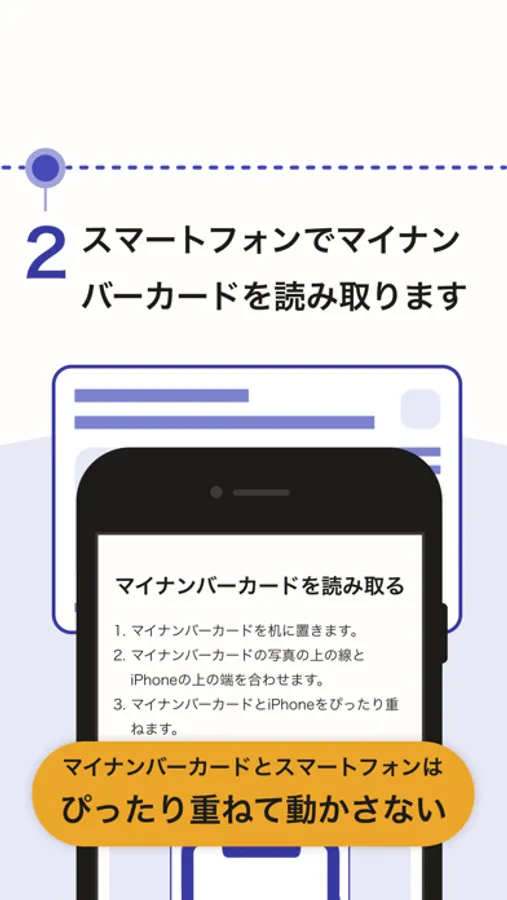2. スマートフォンでマイナンバーカードのICチップを読み取ります
