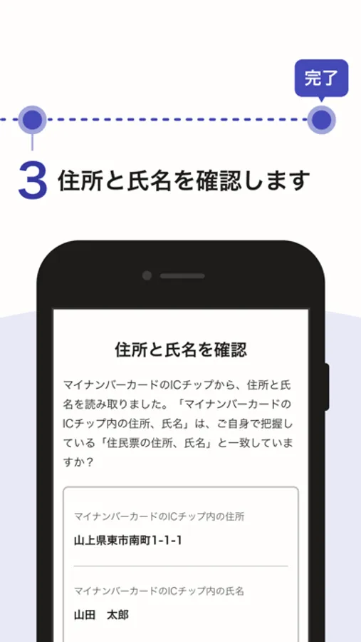 3. マイナンバーカードのICチップ内の住所と氏名を確認します