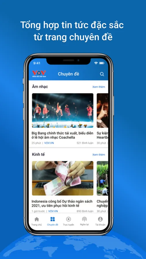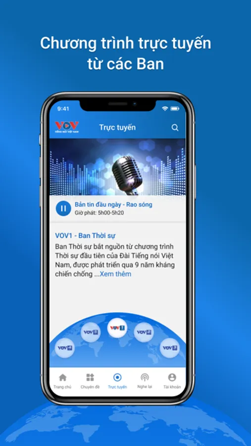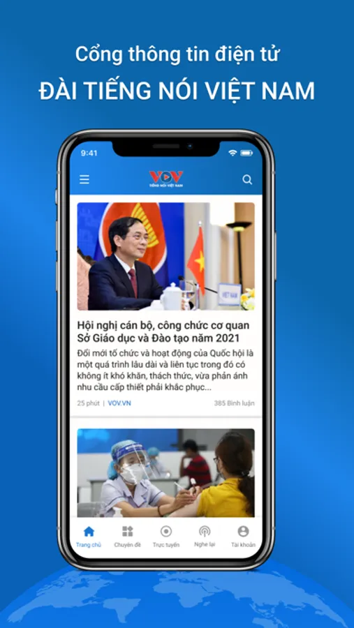 Ứng dụng VOV - Tiếng nói Việt Nam là cổng thông tin điện tủ chính thức của Đài Tiếng nói Việt Nam được xây dựng để cung cấp thông tin, hoạt động, tổng hợp tin tức từ các kênh phát thanh, truyền hình của Đài.