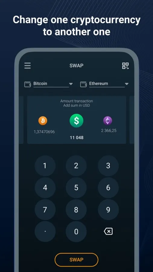 Online Wallet is a crypto wallet with the exchange function in one application!