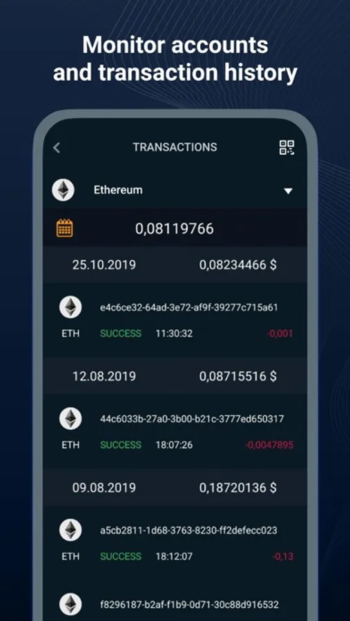 - See the transaction history for each wallet for any period;