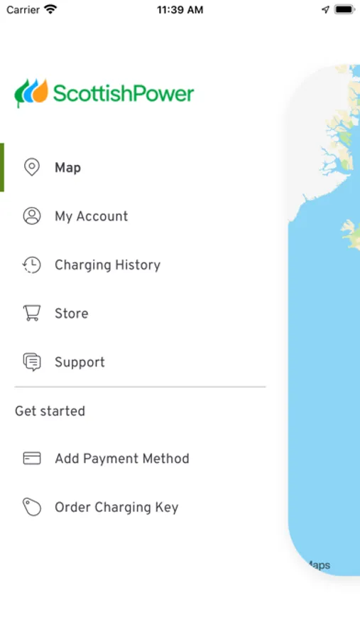 ScottishPower Recharge charging network app, allowing you locate our chargers, Recharge your EV and pay for it all on the one place.