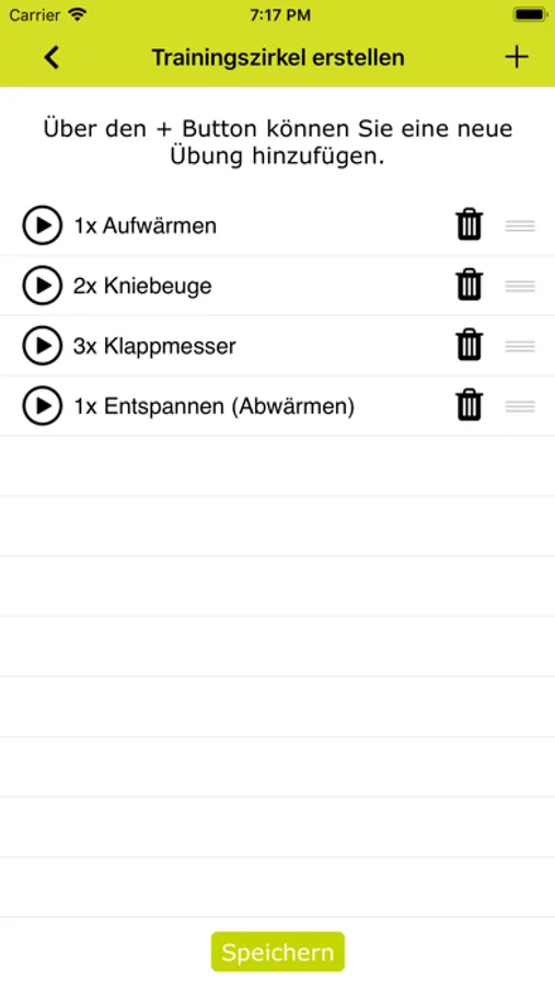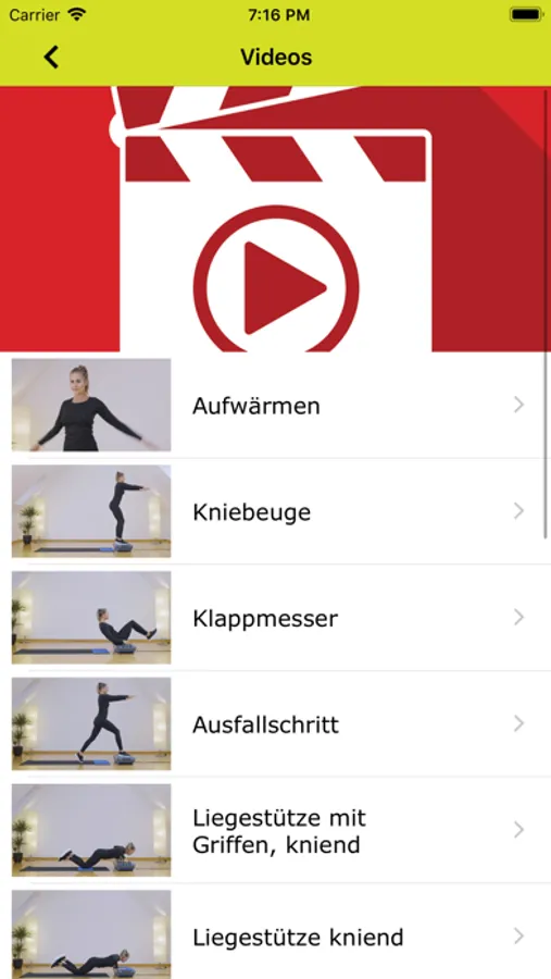 Neben der Konfiguration von Trainingszirkeln haben Sie die Möglichkeit, sich einzelne Übungen anzuschauen und mit zu trainieren.