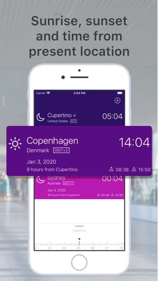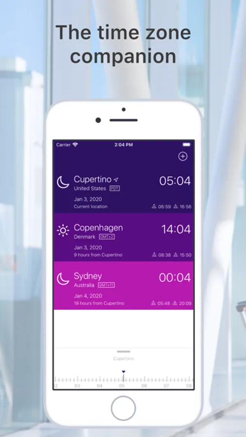 With simple swipes and tap gestures you can convert and calculate local times across multiple time zones. Time Zone Shifter also lets you instantly view different real day & night visualisations, as well as sunrise and sunset information in your favorite city and time zone.