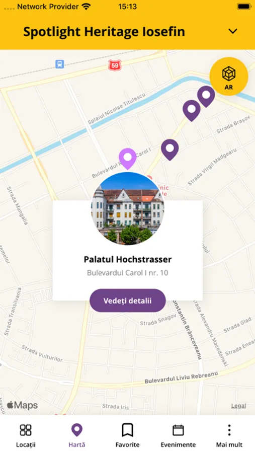Spotlight Heritage involves the population of Timișoara and its visitors in a complex real - virtual world that combines the old history of Timișoara, presented as a digital story, through a website and a mobile application; and the museographic exhibition at the headquarters of the National Museum of Banat but also in public places in the neighborhoods, under the title "Timisoara and the allegory of the senses".