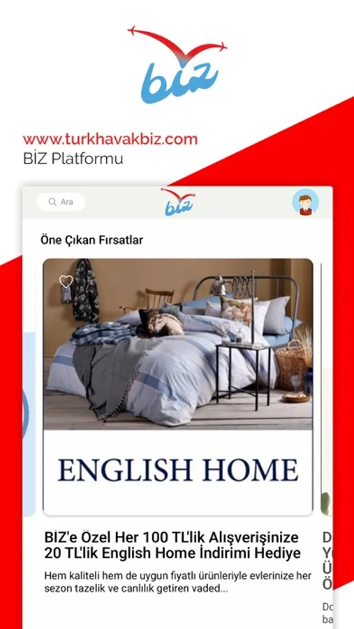 Biz; Türk Hava Yolları personelleri, tüm iştirak çalışanları ve onların birinci derece yakınlarının zevk ve ihtiyaçlarına uygun markalarla kampanyalar sunan aynı zamanda kullanıcıların kendi aralarında ilanlar paylaşıp güvenli alışveriş yapmalarını sağlayan dijital bir platformdur.