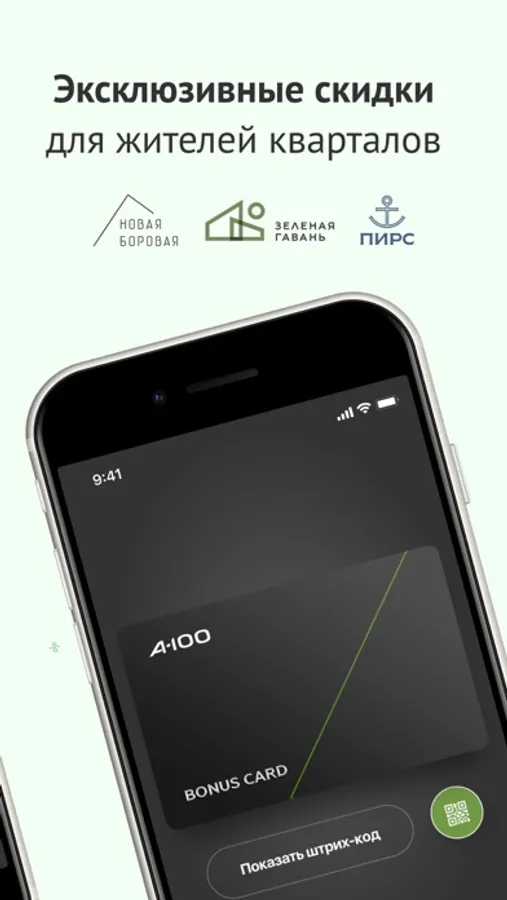 Виртуальная карта лояльности «А-100 Бонус» позволяет получать лучшие скидки в известных магазинах Беларуси. Компании-партнёры подготовили специальные условия для жителей кварталов «Пирс», «Зеленая гавань», «Новая Боровая» и клиентов «А-100 Комфорт».