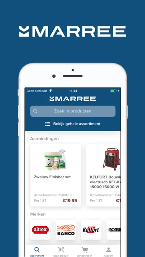• Inlog is gelijk aan de webshop, geen rekeninghouder? Inlogcode is via de app aan te vragen.