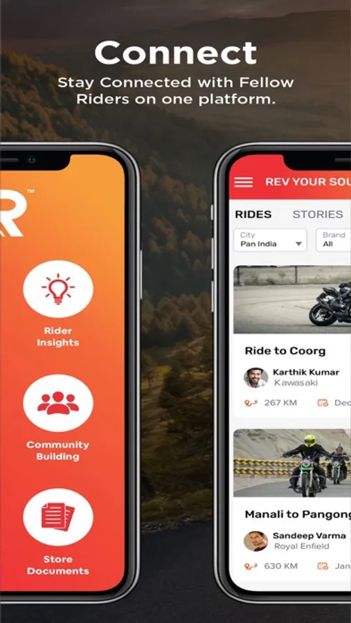 Developed to facilitate safer rides and more exploration, Rev Your Soul is here to build an influential biker community. Organize and participate in rides and Biking Events around the globe, mitigate the challenges faced by bikers and riders before, during, or after their rides, connect and engage - all on one app!