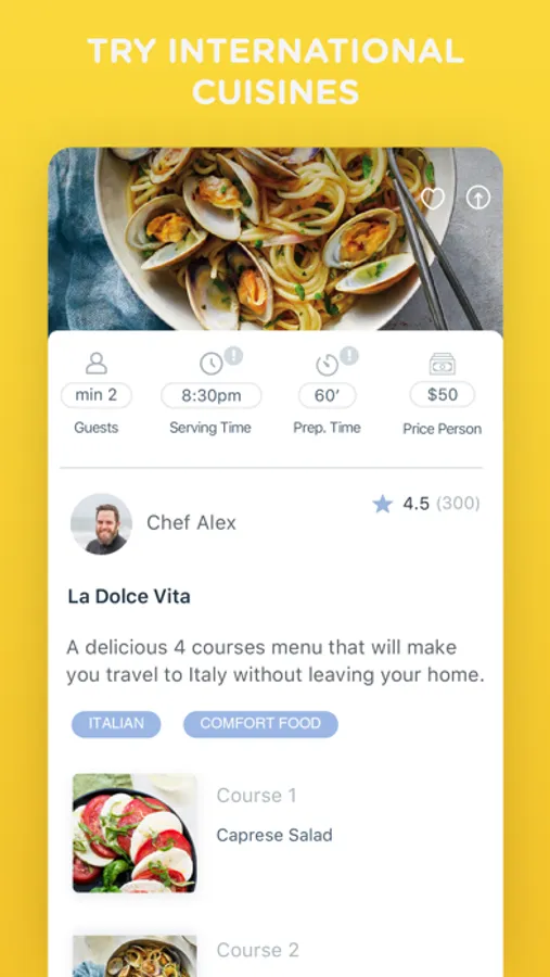 You simply download the app, input your location and instantly gain access to all the dining experiences, offered by the chefs within your range. The options are broad and are constantly being updated, so that you never run out of new flavors.