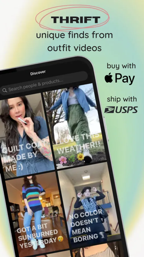 Buy and sell directly from outfit videos in the Teleport feed. Discover the latest trends like Y2K fashion, vintage, handmade jewelry, and upcycled clothes at affordable prices. See how thrifted items fit and are styled through videos vs. just photos. Enjoy easy and secure checkout with Apple Pay.