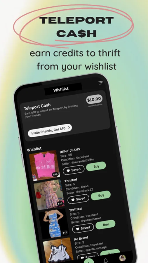 Come for the clothes, stay for the community. Connect with a welcoming community of thrifters, sustainable fashion advocates, and fashion lovers. Earn Teleport Cash to use towards your wishlist by inviting your friends, participating in style challenges, and more!
