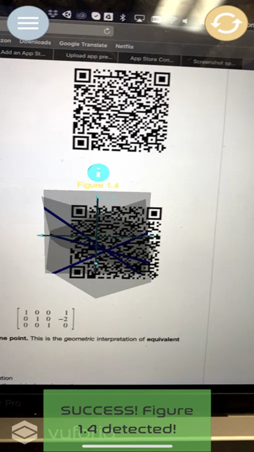 When an instructor creates a 2D figure, the attributes of that figure are stored in a JSON file. This file can be delivered to the app via a menu system, or can be encoded in a QR code right next to the 2D figure in the lecture notes. For less complex figures with smaller JSON files, the app can obtain a JSON string that is encoded directly within the QR code, requiring no internet connection for the user.