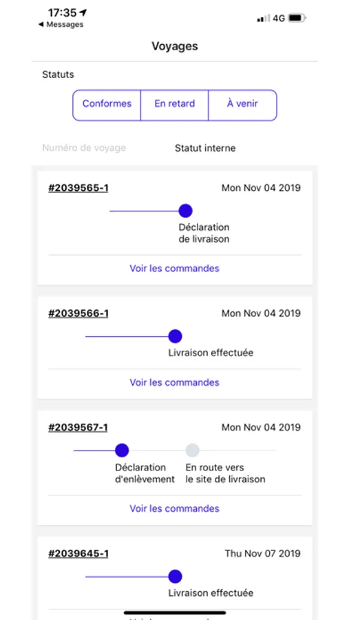 - Déclarer les différentes étapes du workflow du voyage (arrivée sur site, déclaration d'enlèvement etc...).