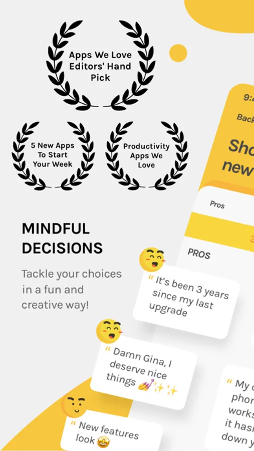 "Is it yes or no?" It can be hard to compare both sides of the story when you only see a list of pros and cons. When they are side-by-side, your decision feels more like a conversation with yourself. What better way to choose than to pitch you against yourself?