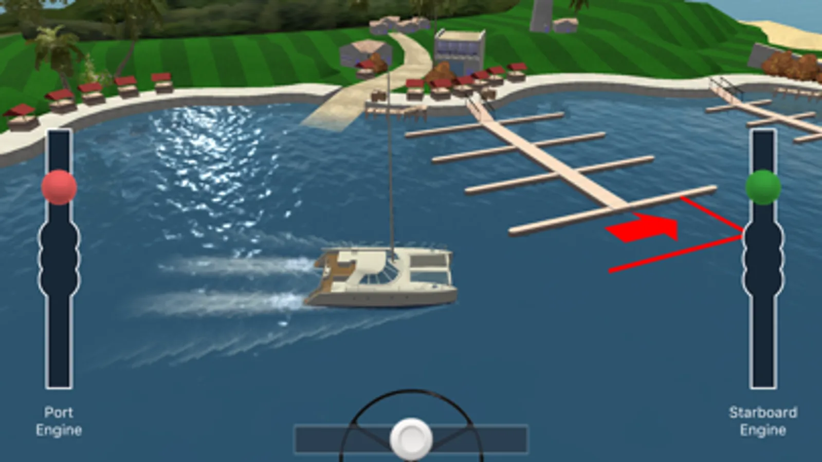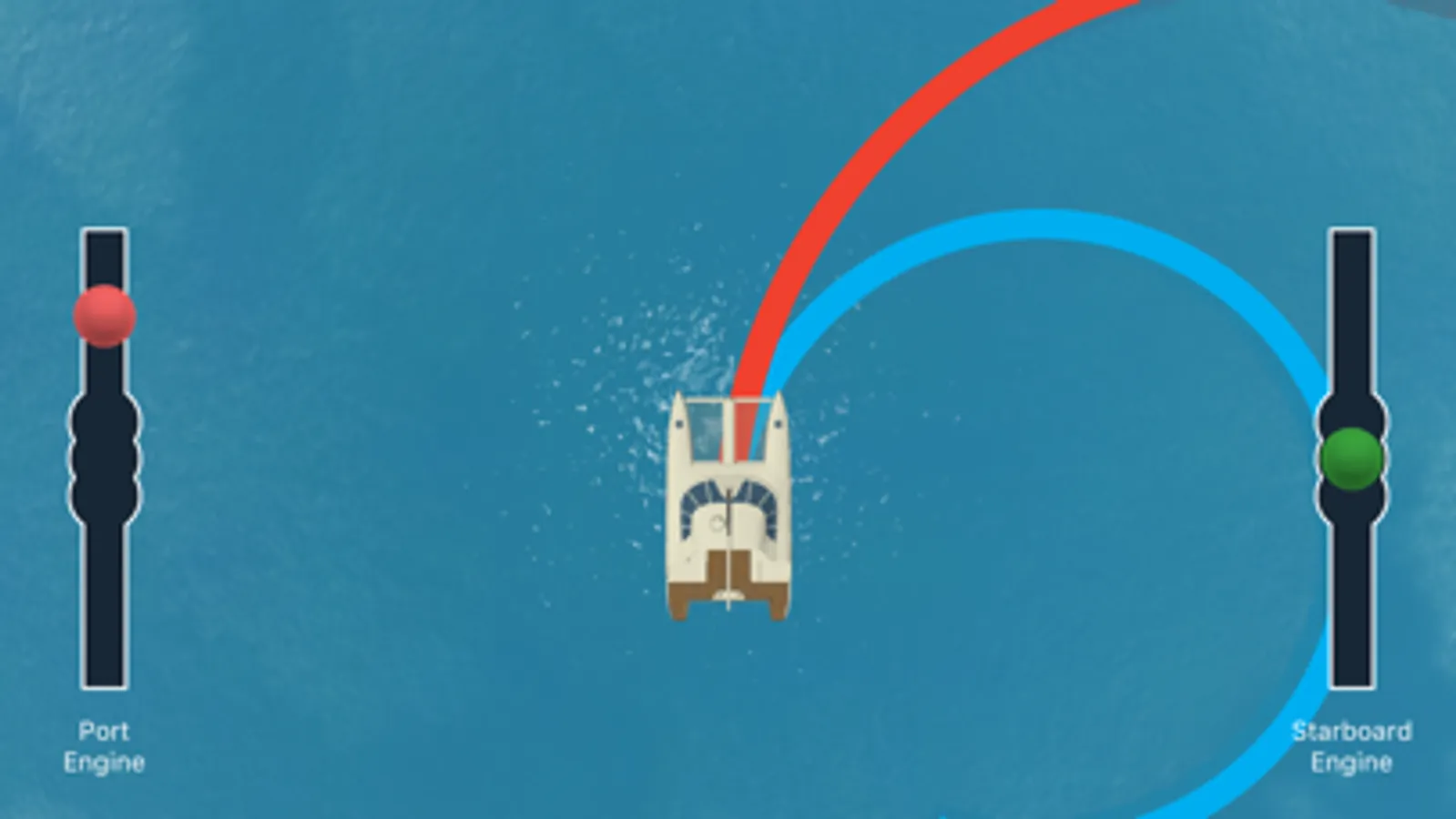 The app includes five learning modules that will teach you the basics of operating a twin-engine catamaran, how to perform a standing turn, how to perform a looping turn, and how to maneuver the boat at slow speeds using just the throttles. The app also includes a number of challenge modules that put your new skills to the test - practice picking up a mooring buoy, or docking the catamaran in a marina.