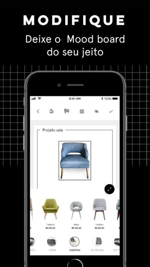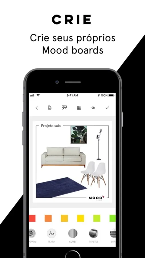 - Monte MoodBoards com produtos reais, o que permite testar diversas ideias de projetos viáveis, de forma rápida;