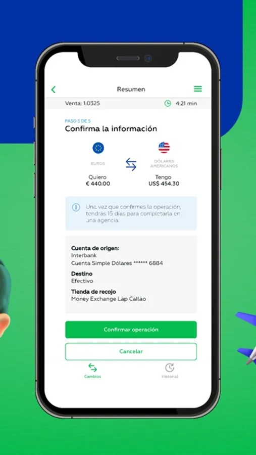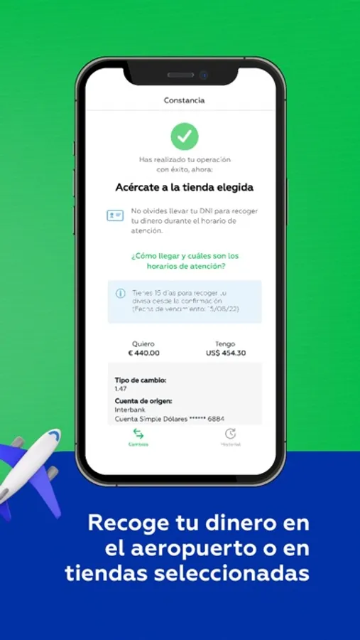 Medios de cambio: Realiza operaciones inmediatas con tus cuentas Interbank o termina tus operaciones en efectivo en nuestras tiendas. Si no tienes cuenta en Interbank, te recomendamos abrir una, te tomará 1 minuto, pero no es obligatorio.