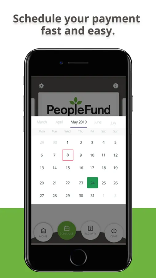 Make and schedule your PeopleFund payment in real-time. The PeopleFund App is the easiest way to make your payment, see your payment history, and chat with your provider. It's fast and easy.