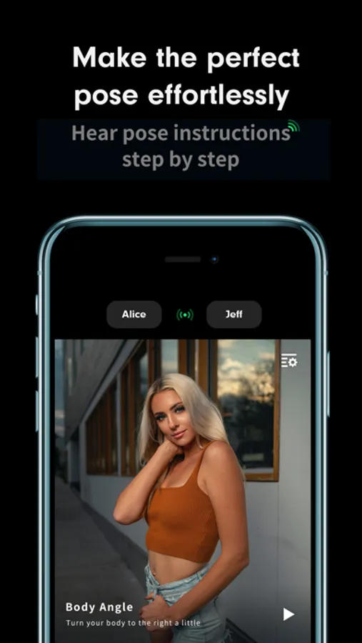 Guided posing steps - Focus on the face, the arms, and the legs, one step at a time. AiryCam intelligently zooms in on each body area to make sure your pose is as close to your expectation as possible.