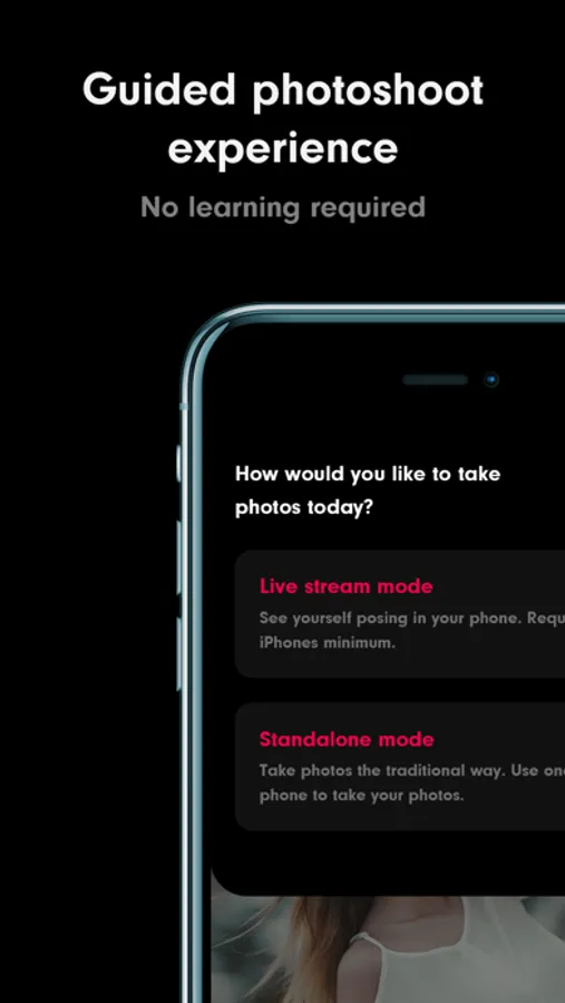 Live camera sync - See yourself posing on your iPhone while your friend is taking your photos with another iPhone. You are no longer in the blind. You can easily adjust your pose like using a mirror.