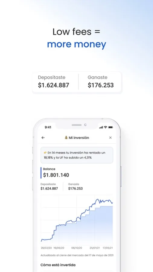 We are your digital solution where you can easily save and invest with low commissions. We are regulated by the CMF (Chile) and the CNBV (Mexico).