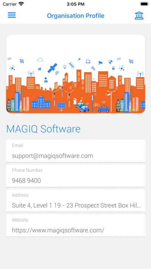 - Organisation Profile (contact details).