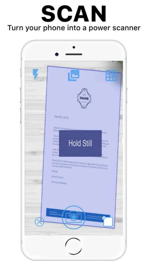 The scanner will turn your iPhone into a powerful scanner with one tap. Scan and send important documents with your iOS device!