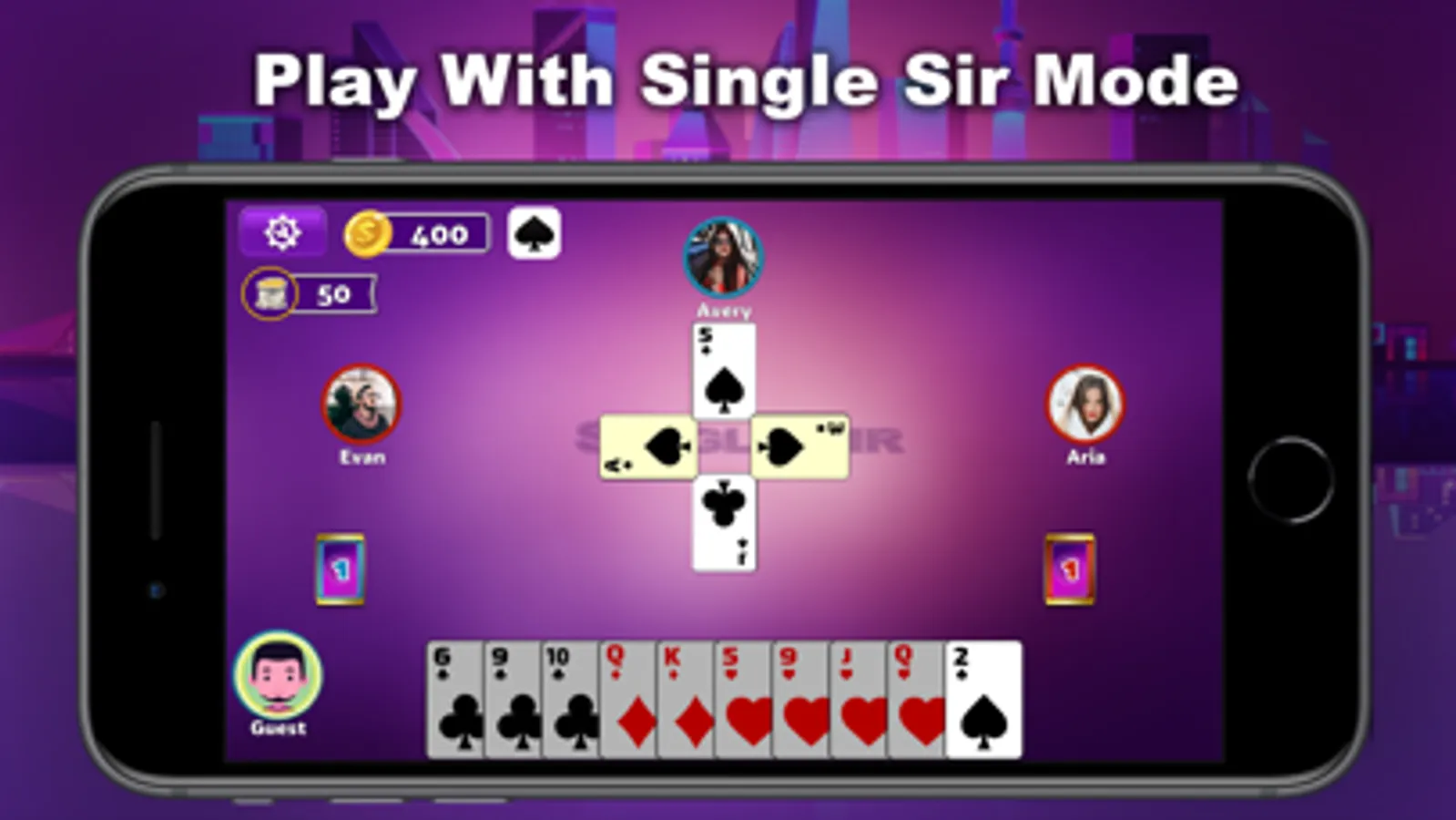 Single Sir: Game will be played with all basic rules. The team who won seven tricks wins the game.