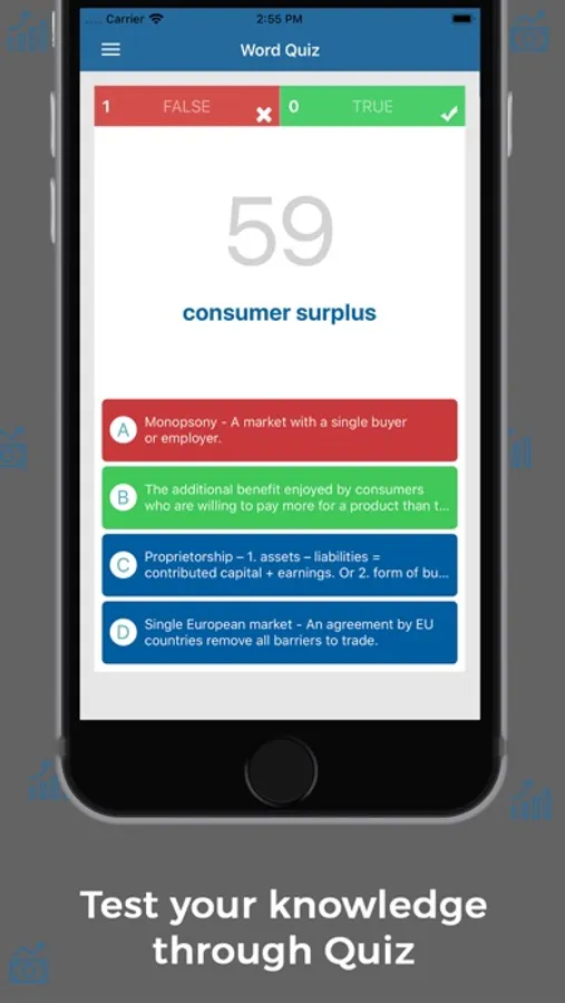 Our new Economics Dictionary Offline app is a light weight and elegant tool. You can find over 7,000+ Economics words with their Economics meanings for Free on your smartphone! You can easily search for any word you want and we will take care of giving the meaning of it and the best thing is that you can take quiz to test your knowledge in this EconomicsTerms.