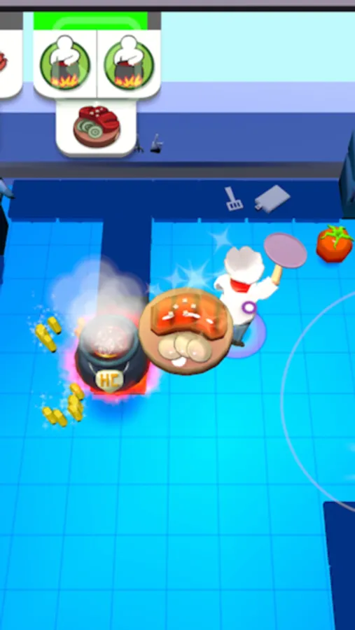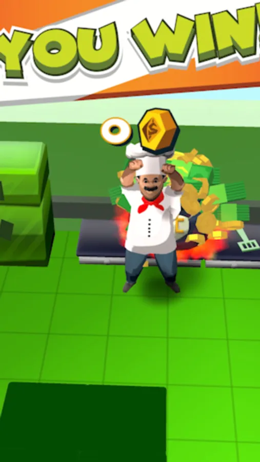 Move your finger on screen to move and collect foods on the ground. Bring them into cauldron to cook delicious dishes and meals. Level up and become the best cook!